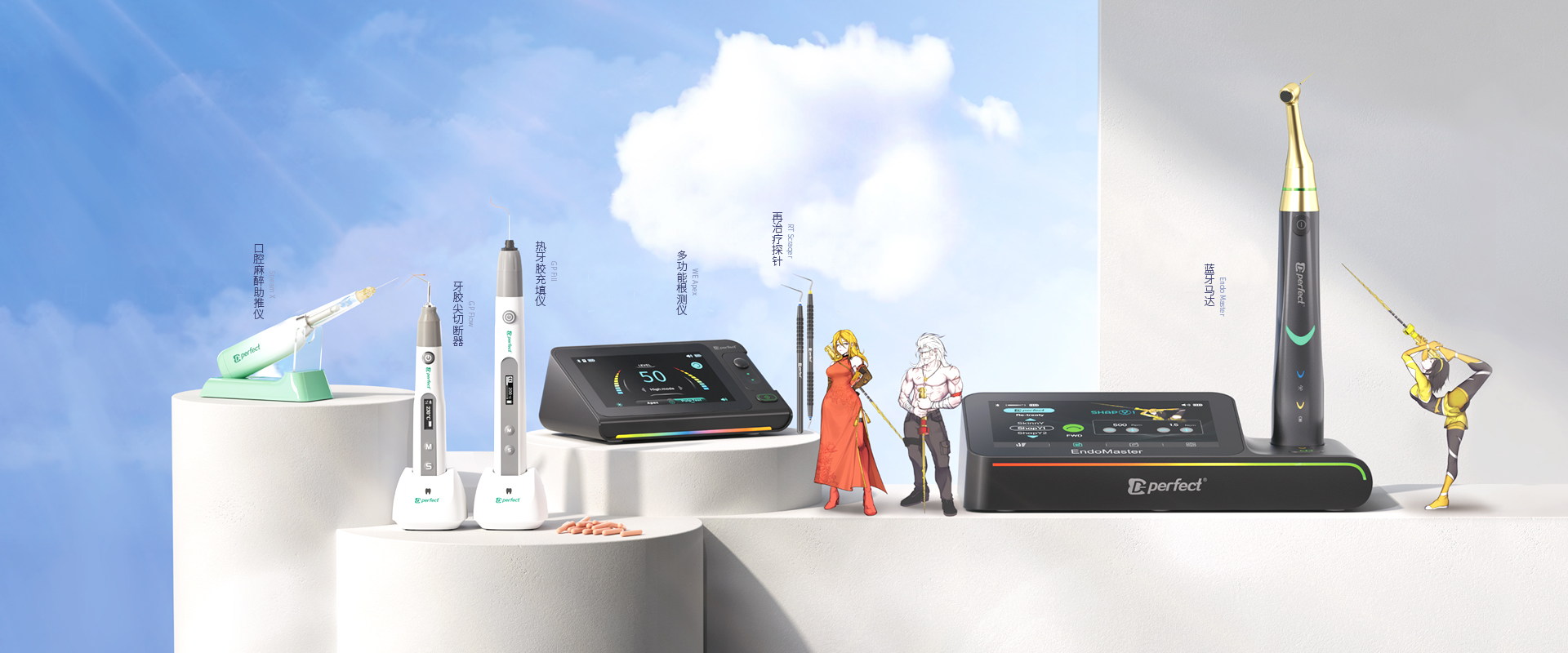 根管預備機、根管測量儀、根管蕩洗器、熱熔牙膠充填系統、口腔麻醉助推儀、生物陶瓷治療輔助工具等。