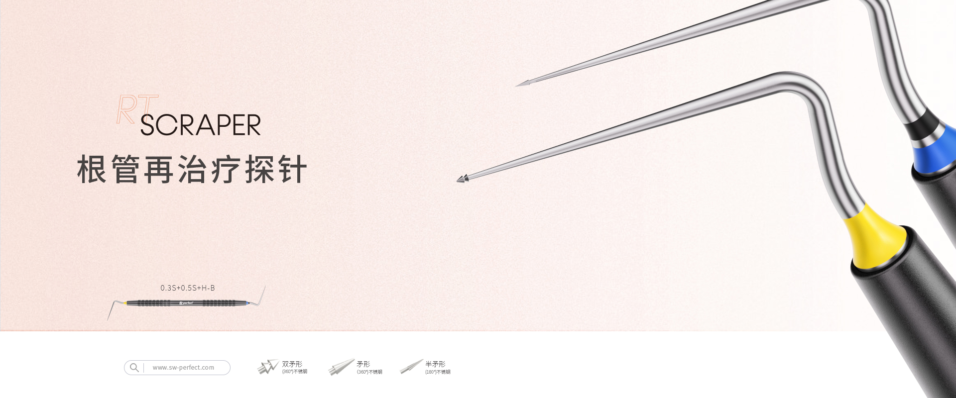 手用及機用根管銼系列、G/P鉆、輸藥針、拔髓針、超聲波U銼、根管充填器,以及金剛砂車針、鎢鋼車針系列等。